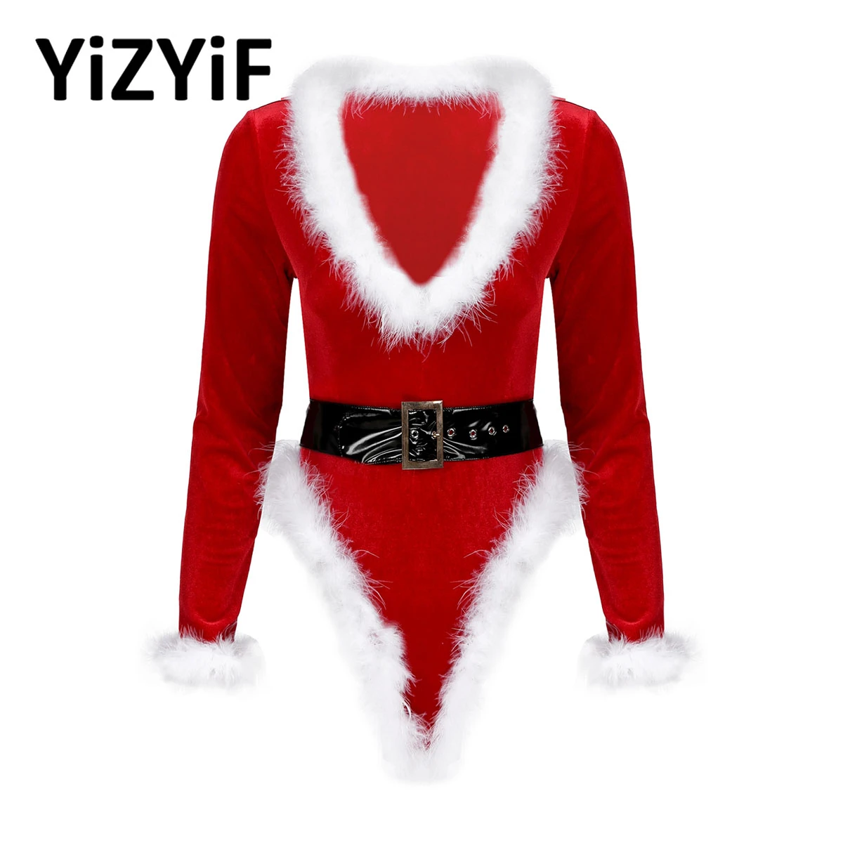 Women Christmas Bodysuit Costume Red Velvet Mrs Claus Santa Cosplay Dress Up Party Lingerie Feather Trimming Leotard With Belt Cosplay Costumes Aliexpress