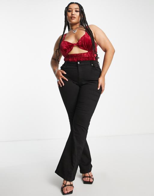 Extro Vert Plus Plunge Front Bodysuit In Red Velvet Asos